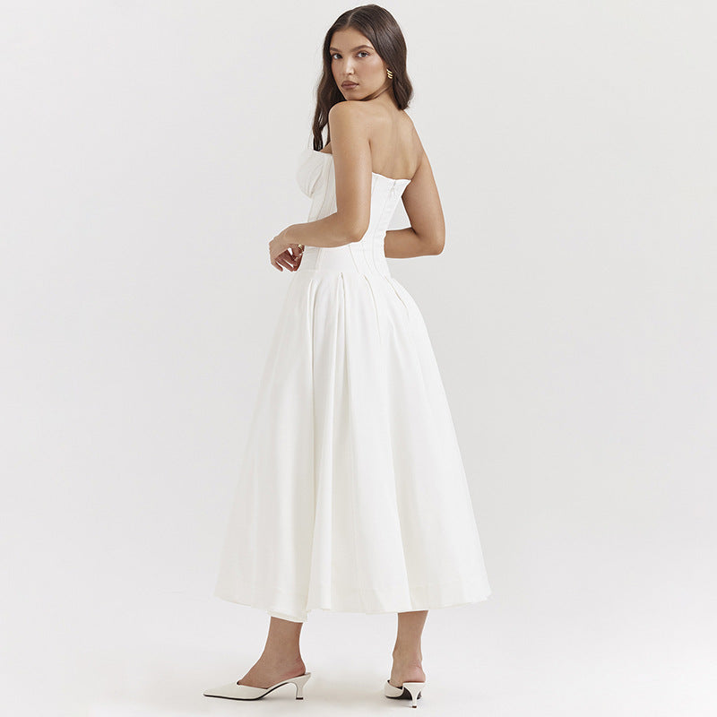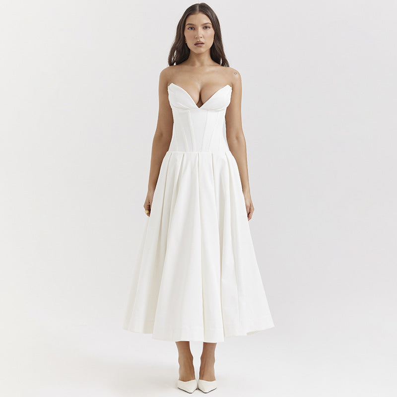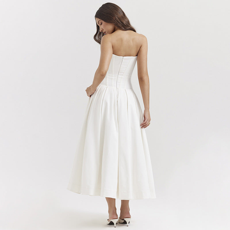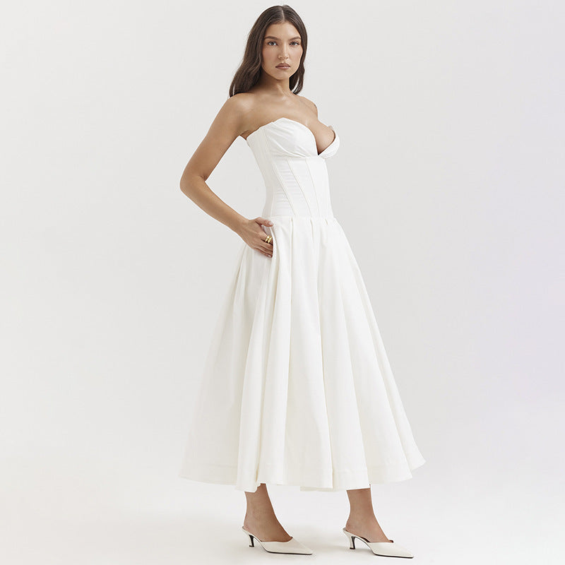 Turn heads and leave a lasting impression with this stunning backless fishbone corset tube dress. Designed to highlight your silhouette, it combines elegance and allure, making it perfect for parties and weddings. The corset detail enhances your figure while the backless design adds a touch of daring sophistication. Make your special event unforgettable with this captivating dress that blends style and confidence effortlessly.