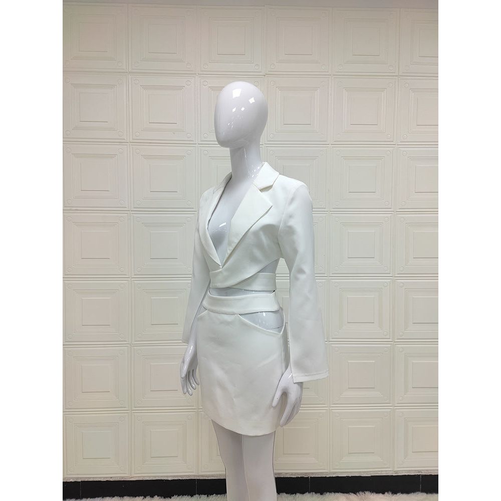 This Long Sleeve V-neck Small Suit Short Skirt Suit Skirt will make you look chic and stylish. The short skirt cut gives you a flatter silhouette and the long sleeve v-neck keeps it classy and timeless. Turn heads the next time you go out with this timeless piece.